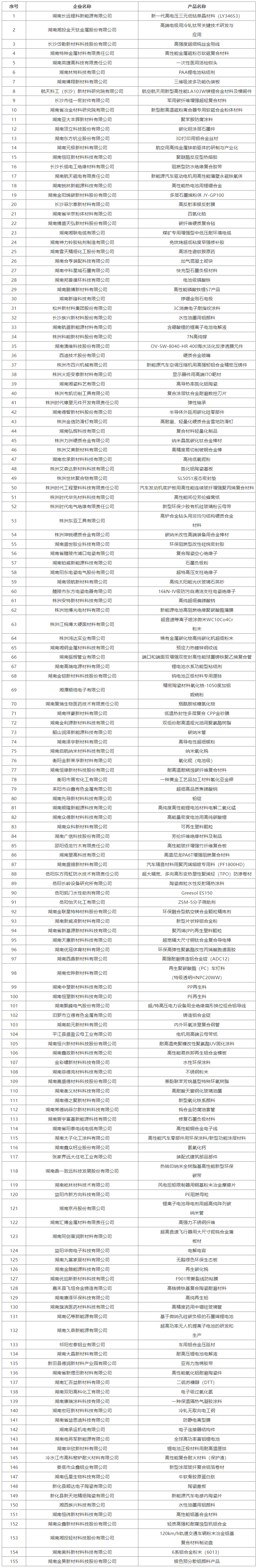 附件:2025年湖南省首批次重点新材料产品拟认定名单