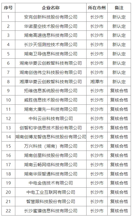 关于公布2025年湖南省重点软件企业名单的通知